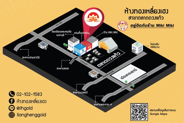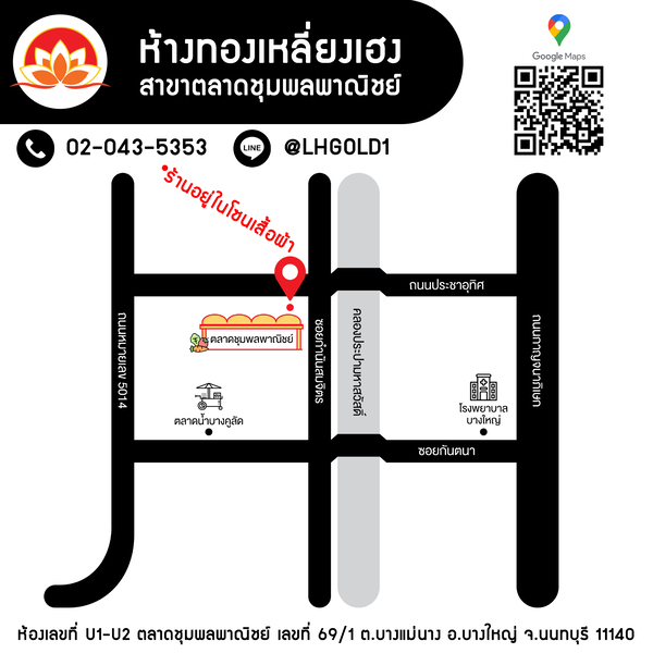 สาขาตลาดดวงแก้ว 77/780 ห้องเลขที่ M07-M08 หมู่ที่1 บ้านใหม่ อำเภอปากเกร็ด นนทบุรี 11120 02-102-1583 @LHGOLD สาขาตลาดชุมพลพาณิชย์ ตลาดชุมพลพาณิชย์ เลขที่ 69/1 ห้องเลขที่ U1-U2 อำเภอบางใหญ่ นนทบุรี 11140 02-043-5353 @LHGOLD1