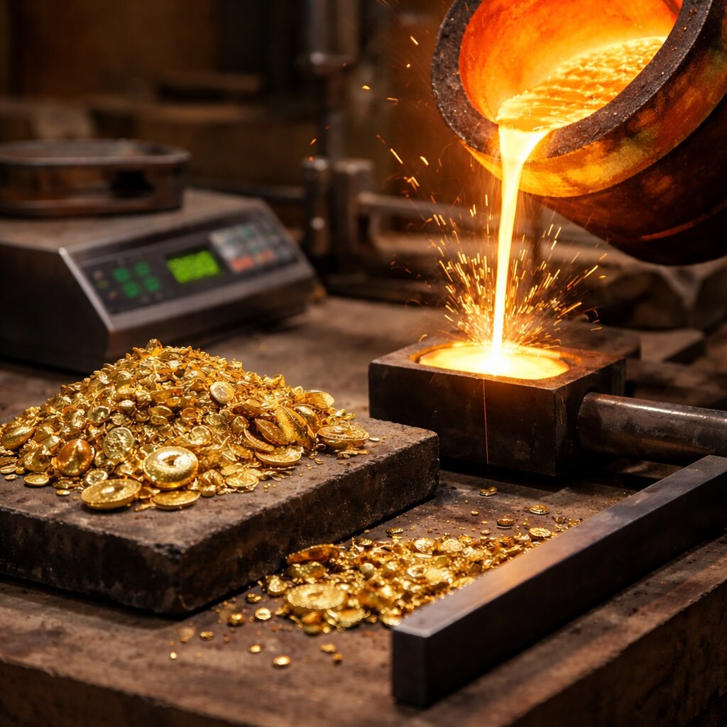 บริการหลอมทองครบวงจร สำหรับทองคำทุกประเภท ไม่ว่าจะเป็น ทองแท่ง ทองรูปพรรณ ทองเก่า ทองชำรุด หรือเศษทอง บริการของเราครอบคลุมตั้งแต่ ตรวจสอบเปอร์เซ็นต์ย่างแม่นยำ ประเมินมูลค่า จนถึงกระบวนการหลอมทอง ด้วยอุปกรณ์มาตรฐาน ทำให้มั่นใจได้ว่าทองคำของคุณจะถูกแปรสภาพอย่างถูกต้องและได้ราคาคุ้มค่าที่สุด