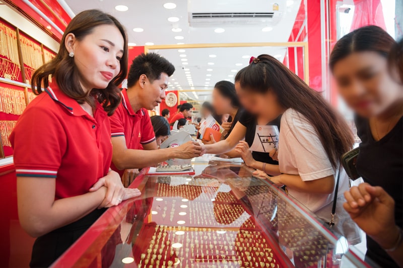 บรรยากาศร้านของเราอบอวลไปด้วยความหรูหราและเป็นกันเอง ตกแต่งอย่างพิถีพิถันด้วยสไตล์ที่เรียบหรู เพื่อให้ลูกค้ารู้สึกผ่อนคลายและมั่นใจในการเลือกชมสินค้า การจัดวางสินค้าทองคำในตู้โชว์ได้รับการออกแบบให้โดดเด่นและดูง่าย ทำให้คุณสามารถเลือกชมและสัมผัสกับความงดงามของเครื่องประดับแต่ละชิ้นได้อย่างเต็มที่ ทีมงานของเราพร้อมต้อนรับและให้บริการด้วยความใส่ใจในทุกๆ รายละเอียด เพื่อให้คุณได้รับประสบการณ์ที่น่าประทับใจที่สุดเมื่อเข้ามาที่ร้าน
