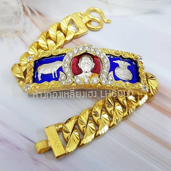• เลี่ยมทองเลสข้อมือสำหรับพระเครื่องหลวงพ่อรวย